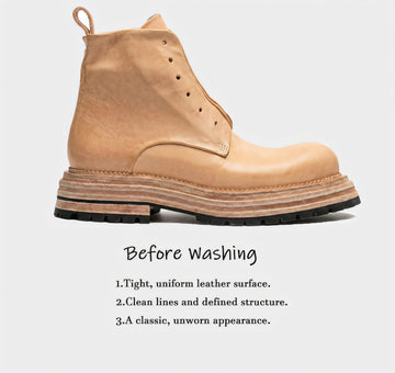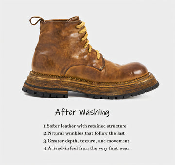 the unrepeatable character of washed leather, and the structural integrity of hand-made Goodyear welting.